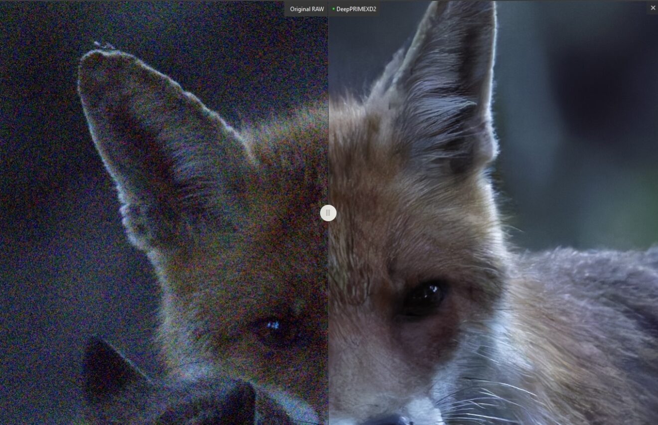 Ich binde euch hier nochmal das offizielle Beispielbild der neuen Entrauschungstechnologie, das ihr oben schon als Beitragsbild gesehen habt, in höherer Auflösung ein. Sicherlich ist das kein besonders praxisnahes Beispiel, das Bild soll vielmehr durch Extreme andeuten, wozu die Software in der Lage ist (anklicken zum Vergrößern):