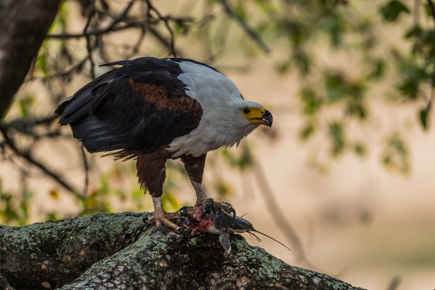 Ein Schreiseeadler, der seine Beute verspeist.