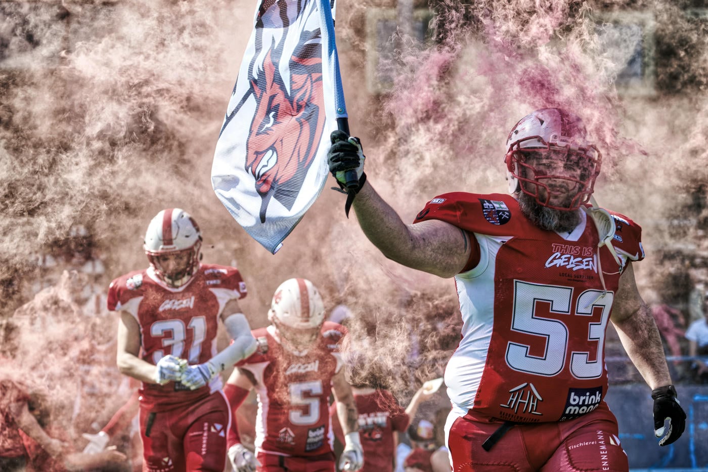 American Football am 12.04.2025 im Fürstenbergstadion Gelsenkirchen-Horst. Die Gelsenkirchen Devils vs. TSV Bocholt Rhinos.