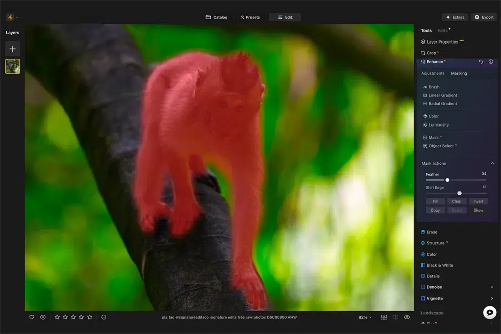 Abseits der Porträt-Werkzeuge gibt es mit dem Weichzeichnen-Regler für Masken eine weitere nützliche Neuerung. Damit lassen sich weichere und natürlicher aussehende Übergänge an Maskenrändern erzielen. Zusätzlich gibt es einen Regler, mit dem sich die Maskenauswahl verkleinern oder vergrößern lässt. Diese Funktion steht euch jetzt für alle Maskenarten zur Verfügung.
