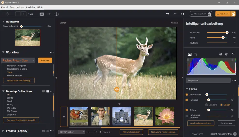 Die Software startet als eigenständige Anwendung deutlich zügiger und zeigt verbesserte Kompatibilität mit Adobe Lightroom und Apple Fotos. Auch die Navigation wurde optimiert. Zuschneidewerkzeuge und Tastatursteuerung sollen nach dem Update reibungsloser funktionieren.