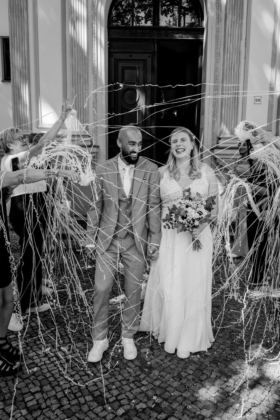 Der Unterschied ist, dass bei Hochzeiten das Licht meist schon für die folgende Party stark gedimmt ist und der DJ mit unsäglichen Buntlicht stört. Man braucht also den Blitz zum einen um die Bewegung brauchbar einzufrieren und das Störlicht zu eliminieren. Und wie du richtig erkannt hast, nervt der Blitz, weswegen man eher sparsam mit dem Einsatz ist. Ich habe auch schon mal einen Bräutigam gehabt der Epileptiker war. Da habe ich mit einer Dauerleuchte gearbeitet.. war okay – aber mit Blitz ist es angenehmer und die Ergebnisse besser.